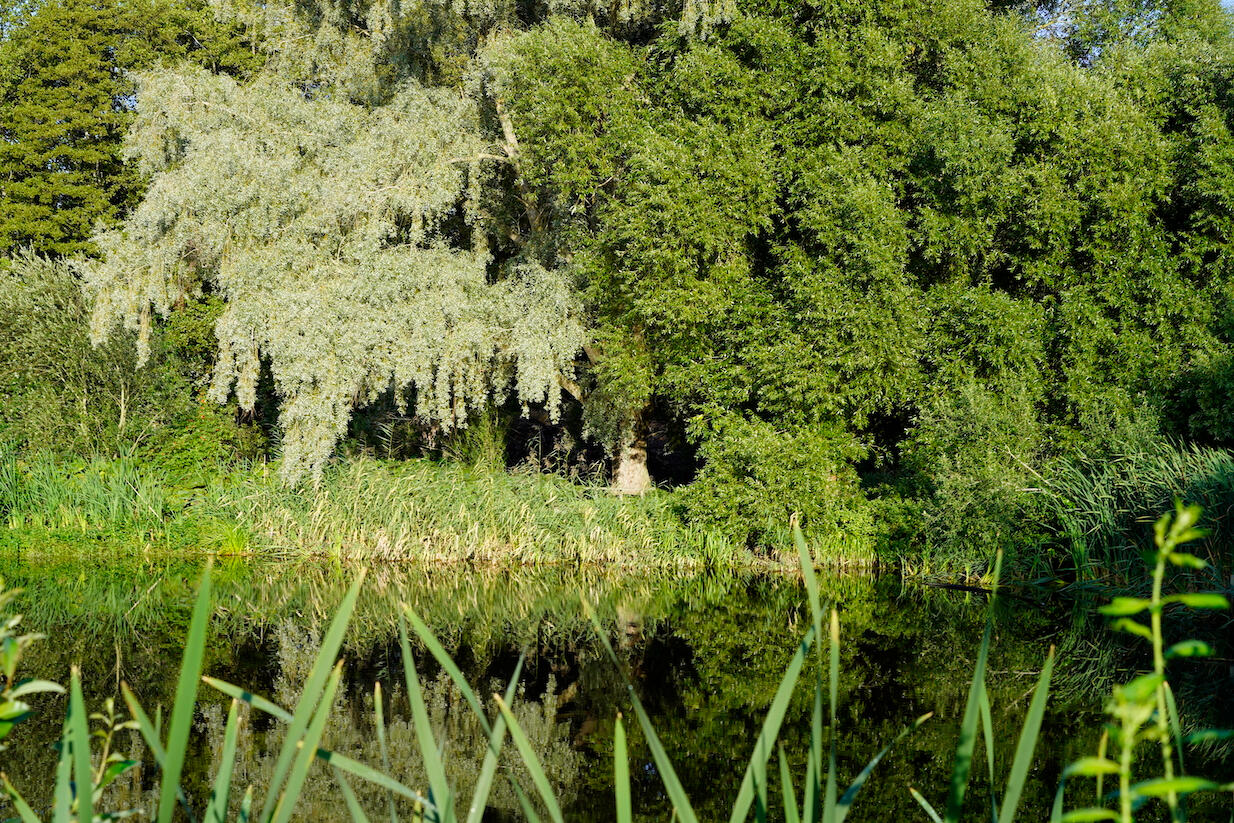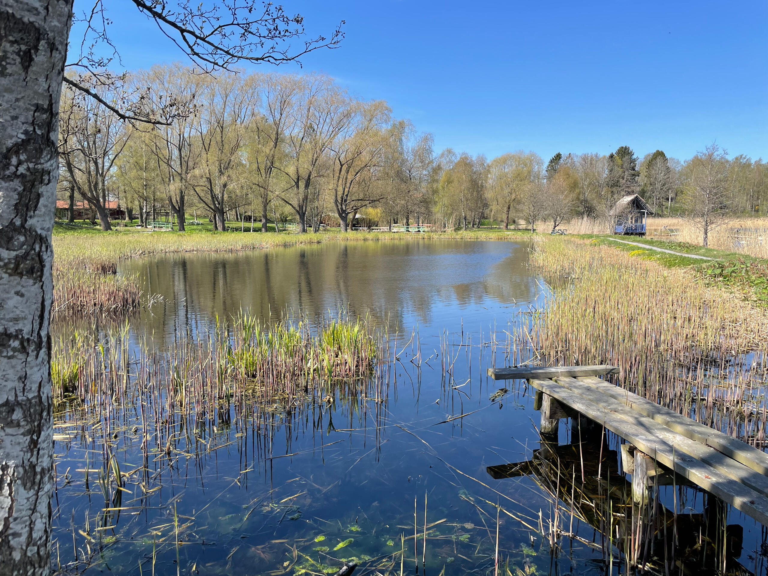 Den här dammen skapades tidigt 2000-tal som en del i att öka reningen av vårt avloppsvatten. Här växer vass i stora mängder som tar upp näringsämnen. Vassen skördas årligen för att användas i våra komposter och på så sätt återför vi näringsämnen till våra odlingar.